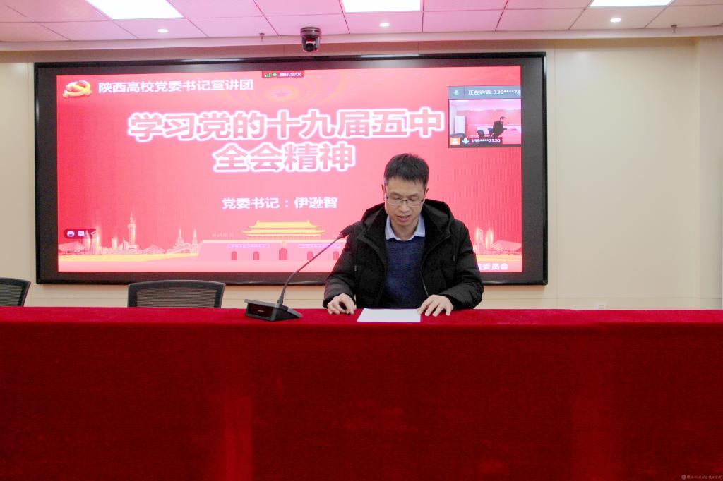 12月14日下午,陕西机电职业技术学院党委召开党的十九届五中全会精神宣讲报告会,党委书记伊逊智作宣讲报告。报告会由党委宣传部部长李明主持。