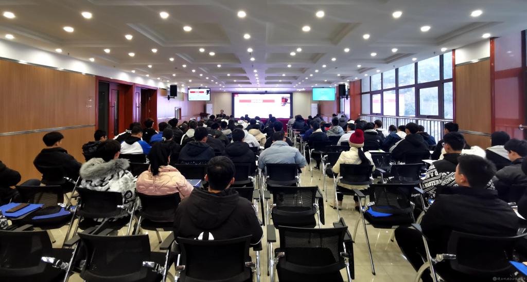 宣讲会在宝福路校区视频会议室设主会场,宝福路校区大礼堂、蟠龙校区博学楼415和416教室设置分会场。党委副书记邓新治、副院长徐圣月、副院长张琴、院长助理赵争东、党政办、党委组织部、党委宣传部、党委学工部、团委等部门负责人、各党支部书记及大学生宣讲团成员、青马工程培训班学员代表三百余人参加了宣讲会。