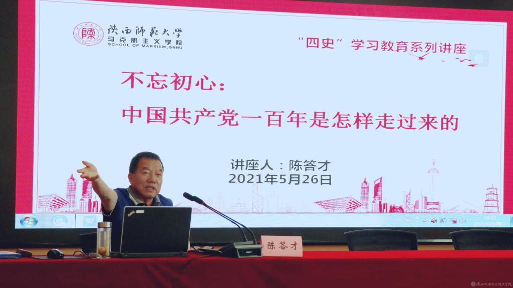 根据《中共陕西省委教育工委陕西省教育厅开展党史学习教育专题宣讲工作方案》的通知要求,结合我校党史学习教育工作安排。6月8日下午,陕西师范大学陈答才教授在我校宝福路校区汽车机电大楼(四楼)视频会议室进行题为《不忘初心:中国共产党100周年是怎样走过来的?》党史学习教育专题讲座。讲座由党委宣传部部长李明主持。
