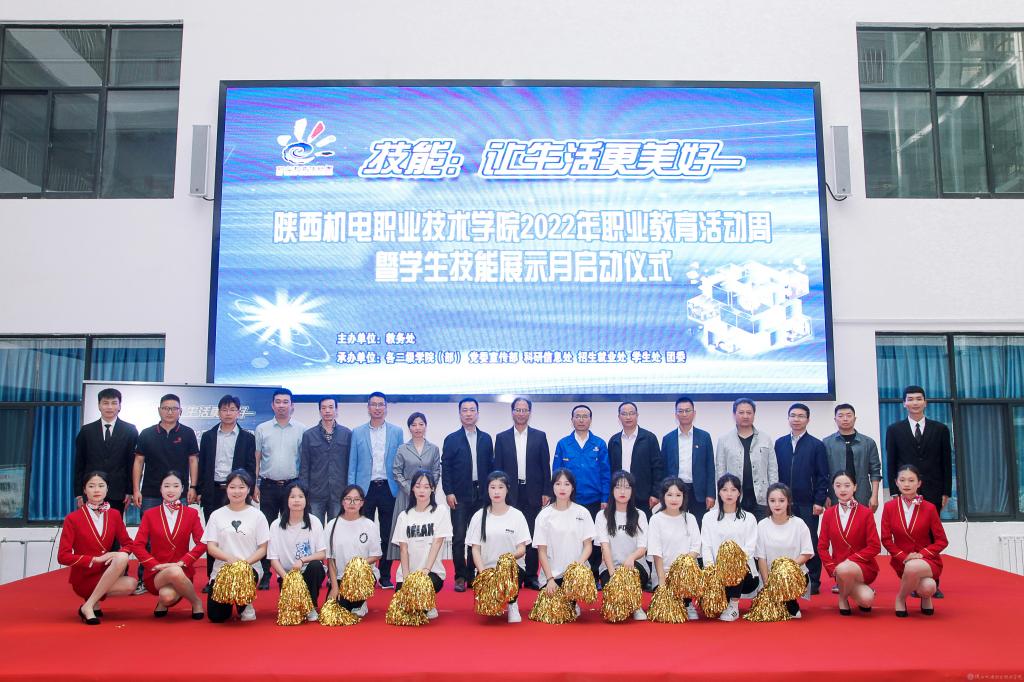 伊逊智、向纪明、田浩荣、张克共同启动2022年职业教育活动周暨学生技能展示月活动。随后,全校师生在启动仪式现场共同参观了技能作品展。