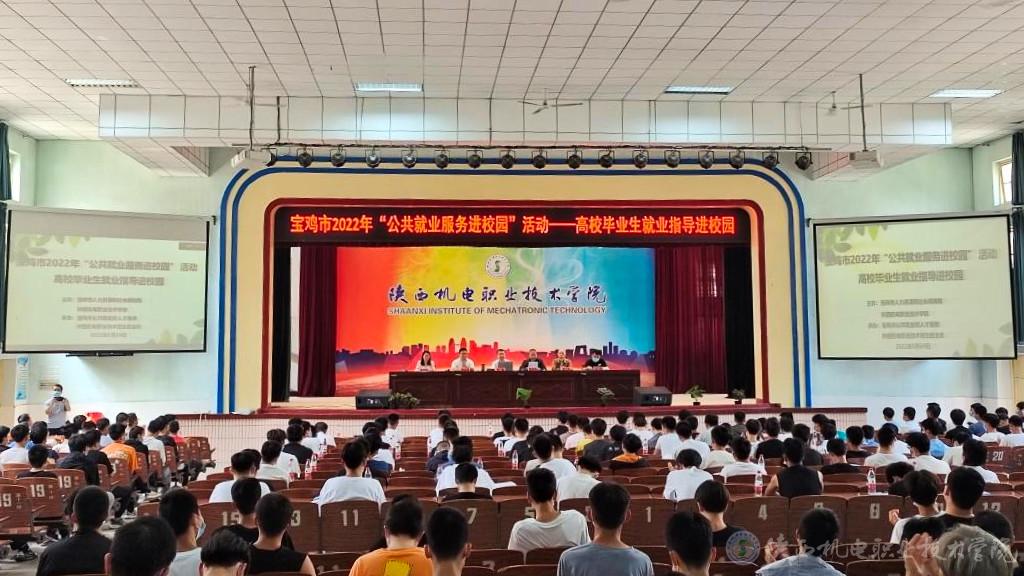 2022年5月24日,宝鸡市“公共就业服务进校园”系列活动在学校宝福路校区大礼堂成功举办。宝鸡市公共就业和人才服务中心主任张军仓、学校招生就业处副处长田正本及学校宝福路校区近400余师生参加活动。此次活动由宝鸡市人力资源和社会保障局与我校联合主办,宝鸡市公共就业和人才服务中心、招生就业处承办,活动由张军仓主持。
