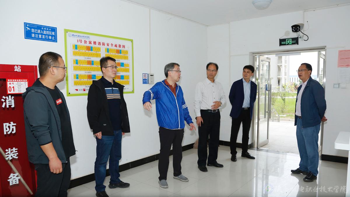 为抓实开学准备工作,迎接同学们返校“回家”,9月26日,校党委书记伊逊智、院长向纪明再次带队检查指导了蟠龙校区开学前准备工作,深入学校生活区、实训大楼等地检查指导工作。院长助理赵争东、学生处处长王建斌、后勤保障处副处长卢彦峰及相关项目负责人同行。
