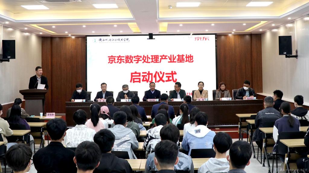 3月14日下午,陕西机电职业技术学院“京东数字处理产业基地”启动仪式在陕西机电职业技术学院蟠龙校区成功举行。参加本次启动仪式的政府代表有宝鸡市数字经济局副局长任海成、宝鸡市经济合作局二级巡视员索双海;企业代表有京东校园馆运营中心总经理万昌昌、京东校企合作大区经理郭洲丞、京东区域运营公司代表周通。学校党委副书记、院长向纪明、党委副书记张琴、党委委员、副院长张克、教务处、招生就业处、校企合作处及电子与信息学院等部门主要负责人参加了本次启动仪式。仪式由电子与信息学院院长姜有奇主持。