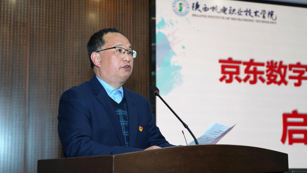 宝鸡市数字经济局副局长任海成在致辞中表示京东集团深入结合区域经济特色,与陕西机电职业技术学院在助力本地经济,人才培养层面作出了显著成果,今后将继续加深政校企合作。