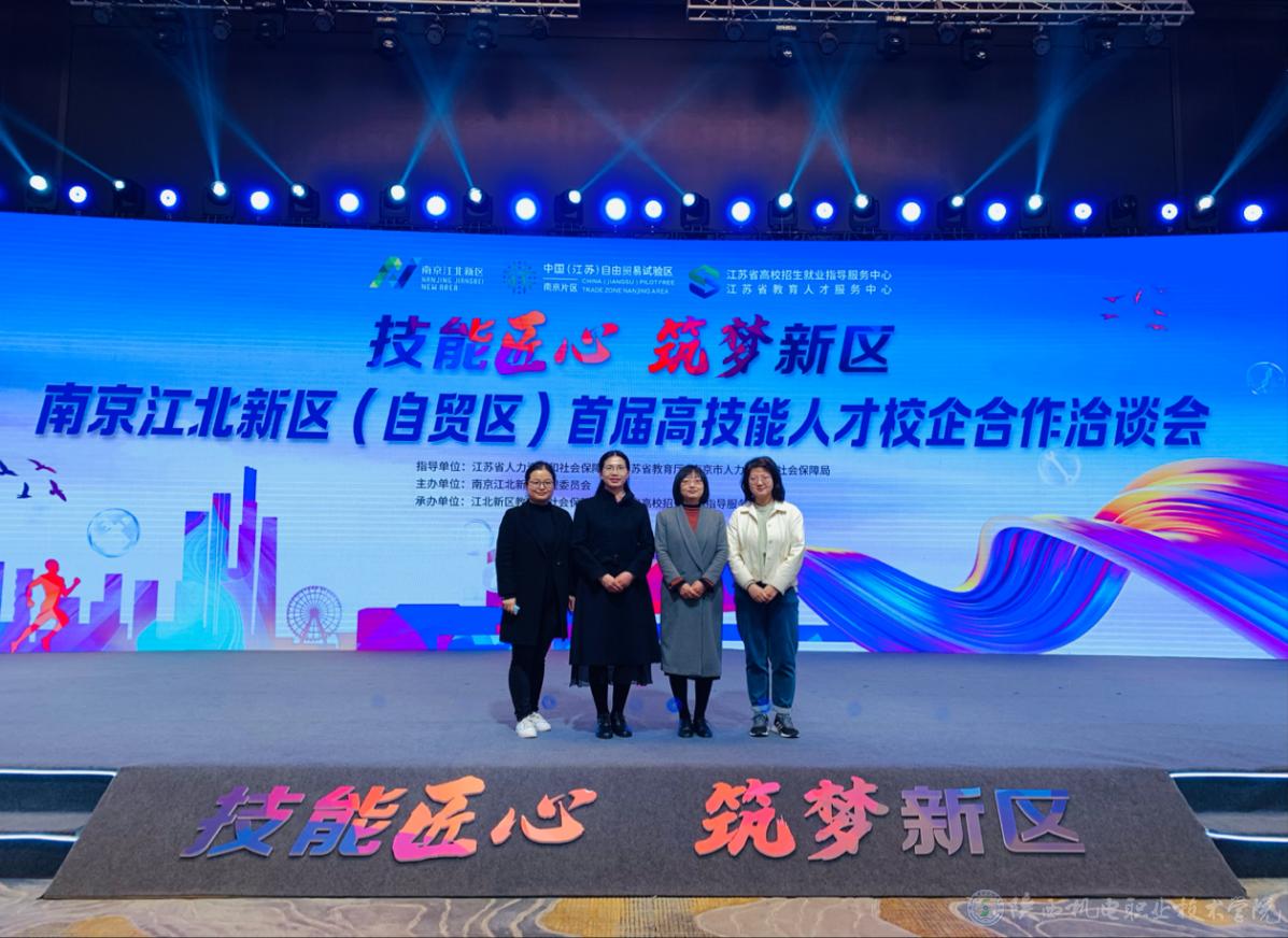 3月31日上午,张琴一行四人参加“技能匠心 筑梦新区”江北新区(自贸区)首届高技能人才校企合作洽谈会。江苏省教育厅副厅长、党组成员、省委教育工委委员杨树兵,江苏省人力资源和社会保障厅二级巡视员经洪斌,南京市人力资源和社会保障局党组书记、局长刘莅,以及省市相关部门负责同志应邀出席,江北新区党工委委员、管委会副主任林其坤参加,新区教育和社会保障党工委书记、局长郑武主持。
