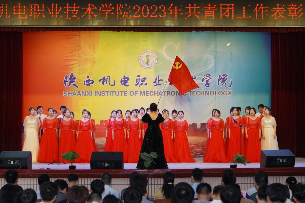 大会在慷慨激昂的团歌歌声中闭幕。这场表彰盛会激励和感召着广大陕机电青年学子与时代同步伐,与人民共命运,在青春的赛道上奋力奔跑,续写青春华章。