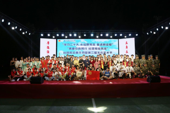 为进一步推进校园文化建设,加强各民族文化交流,丰富大学生校园文化生活,打造精品社团,推动学校第二课堂活动的开展,我校于6月14日和6月15日分别在蟠龙校区操场、宝福路校区大礼堂举办社团风采展示月暨第二届文化艺术节启动仪式。党委书记伊逊智,党委副书记、院长向纪明,党委副书记张琴,基础部(体育部)副部长满春燕,校团委书记杨鹏出席活动,全校师生通过线上+线下相结合的方式观看演出。
